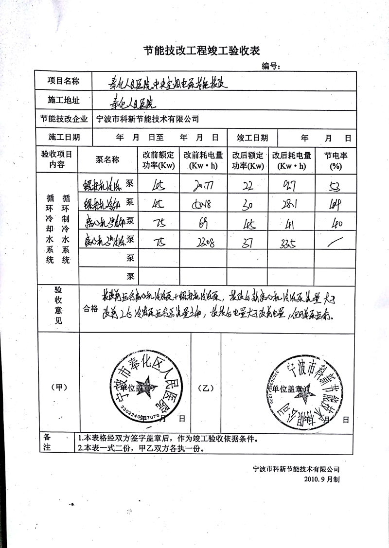 2017年技改,對醫院中央空調制冷、制冷系統配置的共8臺水泵全部進行了技改,按照醫院的實際用能需求重新設計了水泵,同時重新調整了醫院的中央空調運行方式。使醫院整體的用能能耗下降明顯,平均節電率40%,通過技改每年節省用電量80萬度。