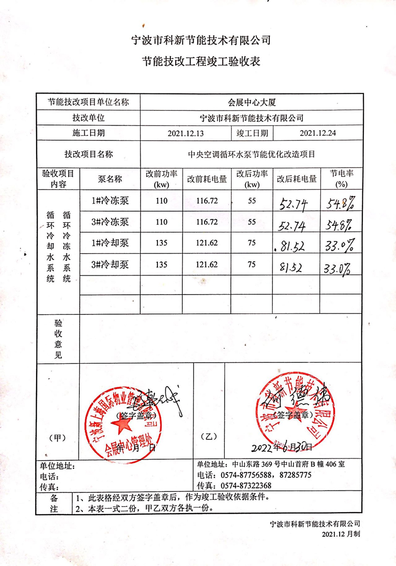 2021年完成技改,會(huì)展中心大廈建成時(shí)間相對(duì)較長(zhǎng),內(nèi)部設(shè)備存在老舊,故障率高,噪音大的問(wèn)題,同時(shí)經(jīng)過(guò)檢測(cè)設(shè)備耗電量也較大。我公司在對(duì)設(shè)備進(jìn)行更新的同時(shí),對(duì)其也進(jìn)行了節(jié)能化的改造。將原來(lái)110kw水泵技改為55kw水泵,將原來(lái)135kw水泵技改為75kw水泵,一站式地解決了客戶的多種問(wèn)題。